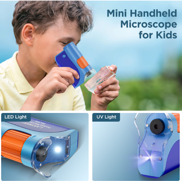 - [Pocket Size] Mini microscope for kids is a very convenient and interesting tool to fit into a small bag or pocket. Easy to operate, help kids to build interests in nature and science learning.