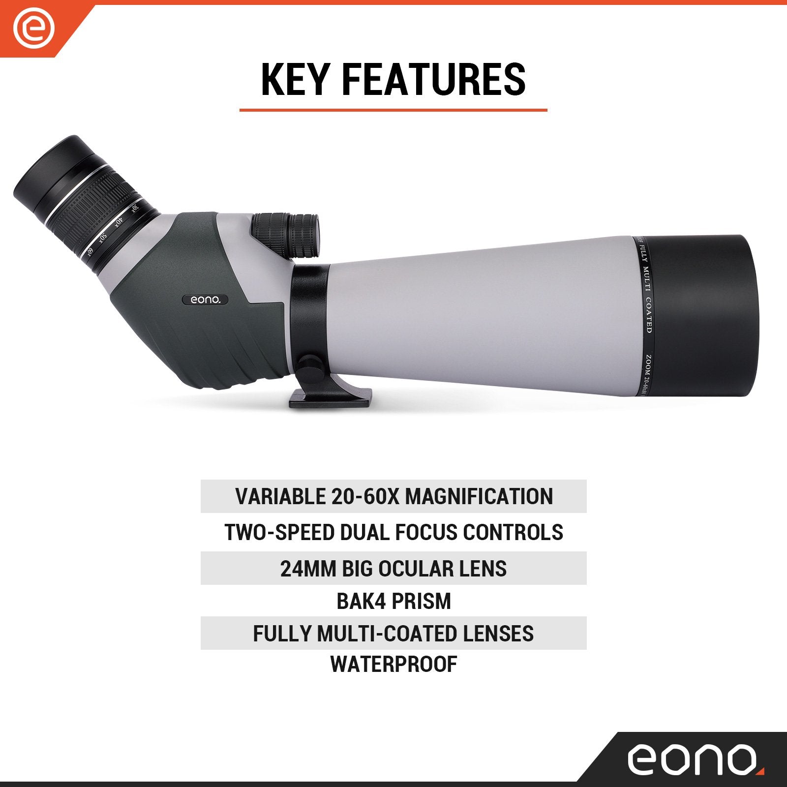 24mm Oculars Lens and 80mm Objective Lens: For more comfortable and clear view.· Variable 20x to 60x focal zoom magnification: Makes it easy to zoom in on target in detail.