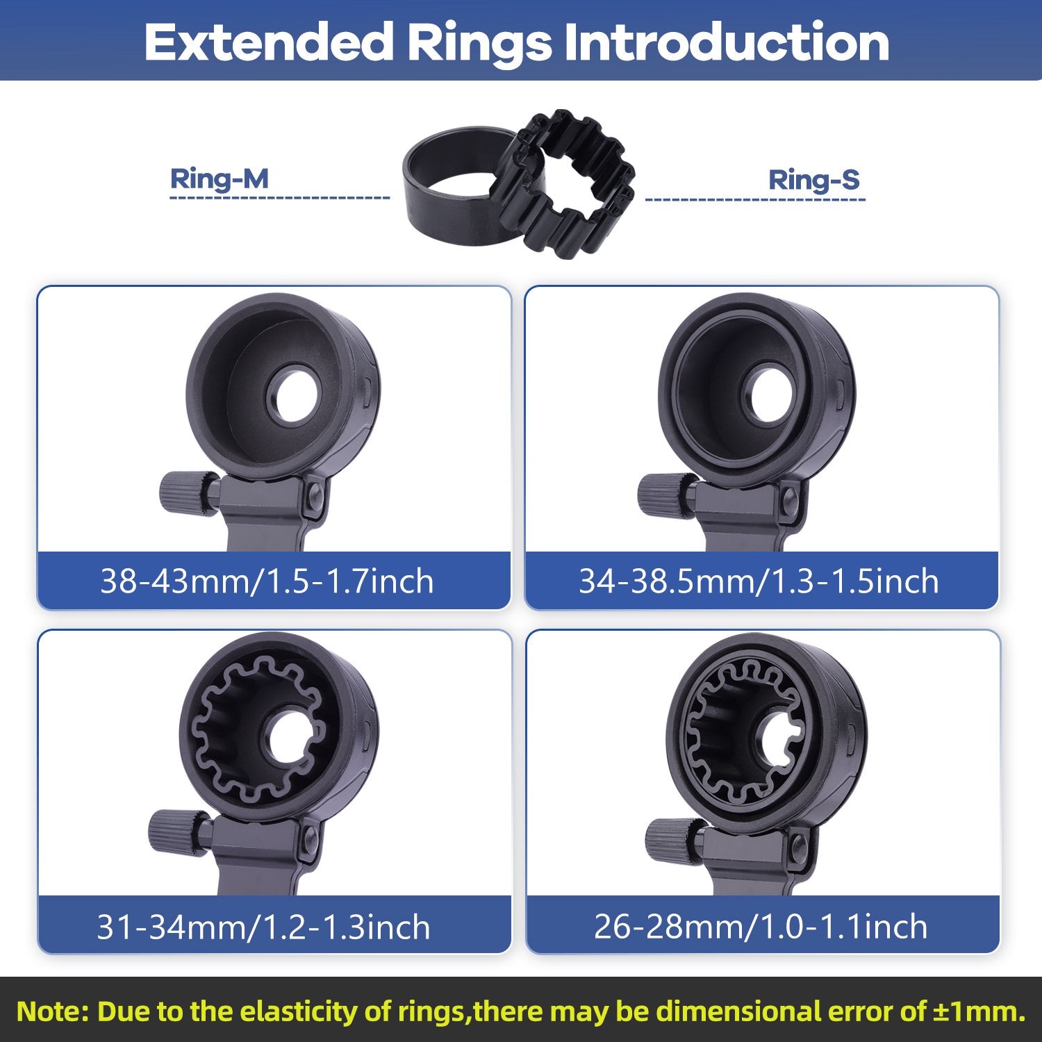- 【Fits Wide Range of Eyepieces】The universal phone adapter mount(with 3 additional rubber rings) is suitable for eyepieces with 28mm-49mm(1.10”-1.93”) outer diameter and can be mounted almost of binoculars, monocular, telescopes, spotting scopes, Microscopes.