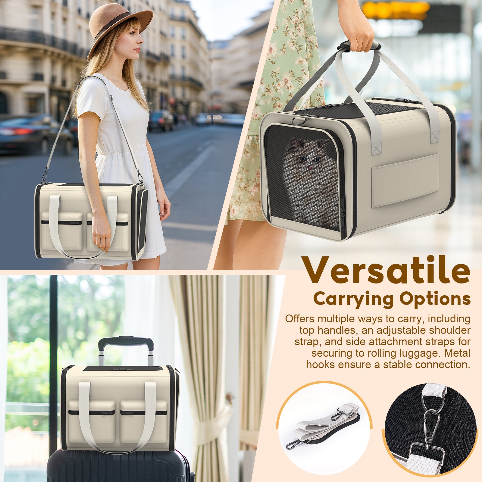LAKWAR Cat Carrier Airline Approved-Pet Carrier for Small Medium Pet Up to 20 Lbs, Soft-Sided Cat Bag Portable Foldable Collapsible Travel Cat Dog Carrier