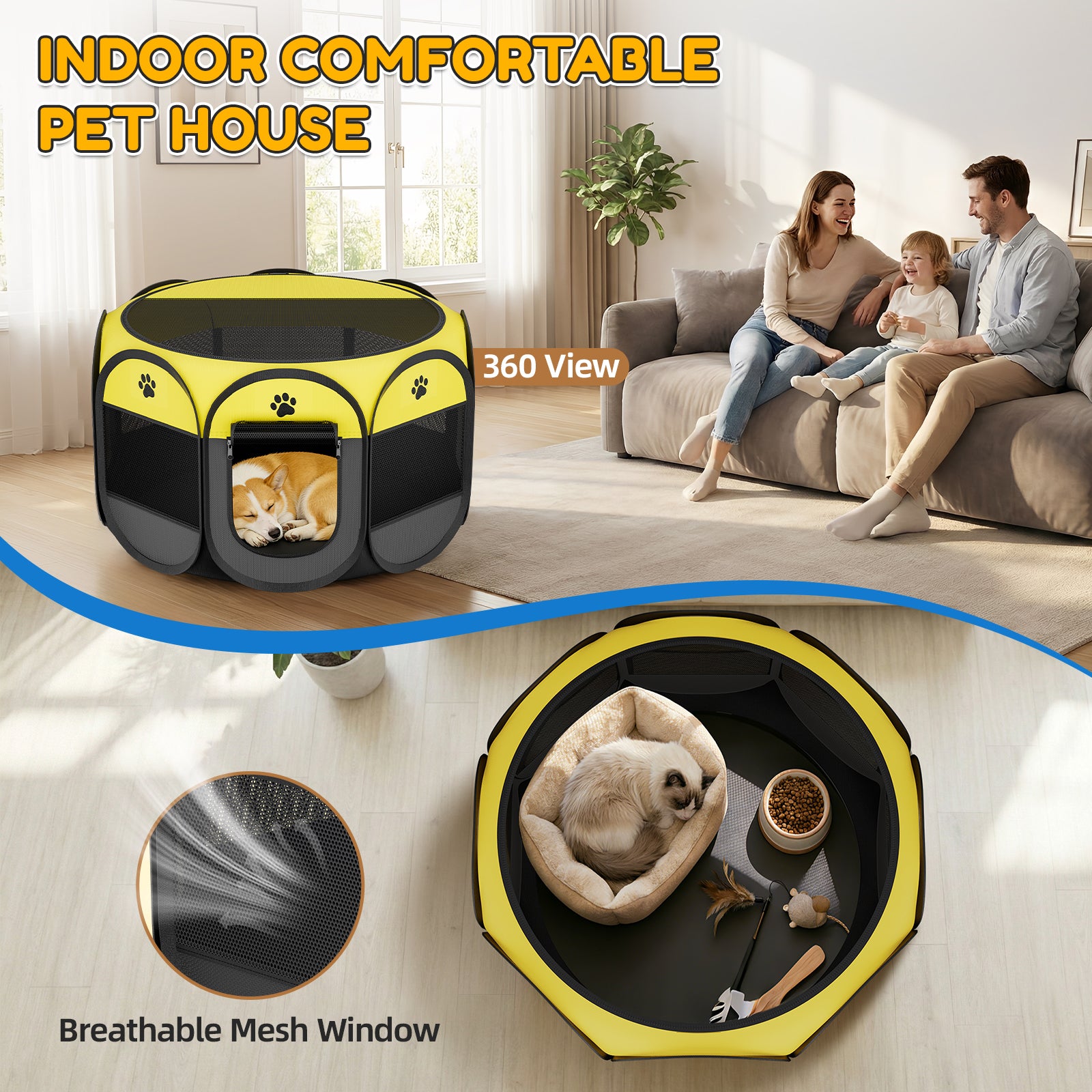 - 【Breathable & Spacious】Featuring an 8-sided layout that maximizes interior space, the 360° densely woven mesh windows and ceiling ensure excellent ventilation while effectively keeping mosquitoes out. Pets can enjoy a comfortable sleep, especially during summer.