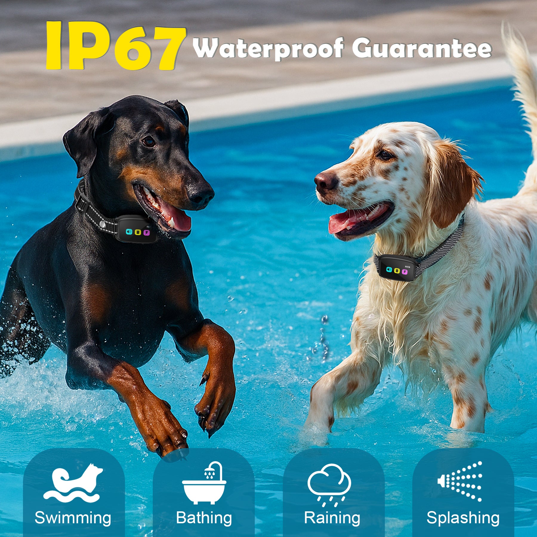 - 【Premium Dog Training Collar with Color Screen Display】Train your dog effectively with this advanced dog training collar that features a color screen display on both the remote control and controller. Easily read the active training mode and battery status, ensuring a seamless experience. With IP67 waterproof technology, this collar is built to last in any weather conditions.