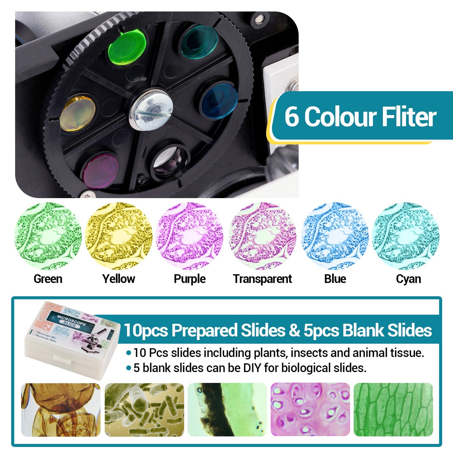 ➤【Easy to Use & Share】Ergonomically design,45°monocular microscope head reduces eye and neck strain for easy shared use. Left and right coaxial coarse and fine focus adjustment offers precise location for sharp and clear images. It is a excellent student microscope in classroom and laboratory,supplemental microscope slides set can help you to explore the fantastic tiny things.