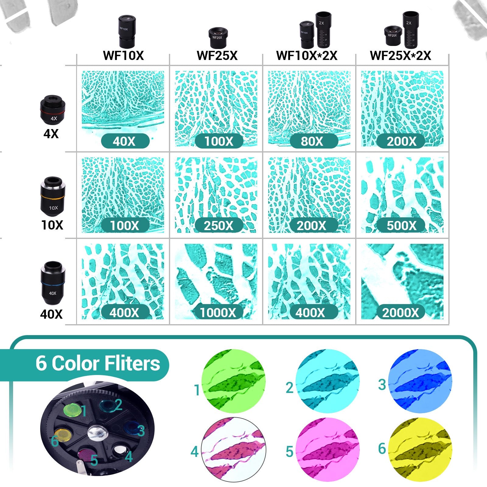 【Powerful Magnification】This optical microscope kit outfit 4x, 10x, 40x objectives and 10x, 25x eyepieces, 2x erecting eyepiece, which provide 40x-2000x inclusive magnification, meet various observation demands for you, it can be used to observe the bacteria, cell and more.