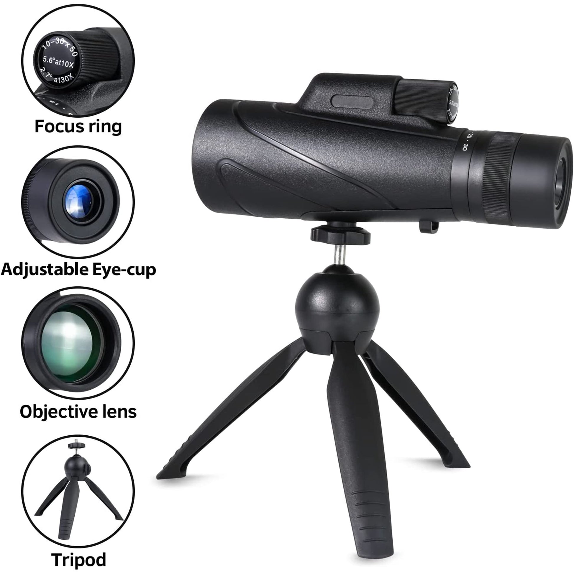 LAKWAR Monocular Telescope Kids and Adults, 50mm Objective Lens, 10X-30X Magnification with Tripod and BAK4 Prism for Wildlife Watching, Hunting, Camping, Scenery Watching